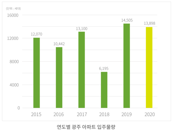 올해 광주에는 총 1만4천여세대의 아파트가 입주하는 것으로 나타났다. 지난해 입주물량보다 소폭 감소한 수치지만, 최근 5년 평균 입주물량에 비하면 23% 증가한 수치다.