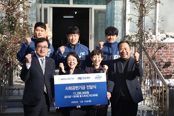 황순현 NC다이노스 대표는 “우리 선수들이 지난 시즌 달성한 기록으로 NH농협은행과 엔씨문화재단과 함께 좋은 일을 나눌 수 있어 기쁘다. 다가오는 2020시즌 지역에 사랑받는 구단으로서 도움을 필요로 하는 곳에 앞장서도록 노력하겠다”고 말했다.