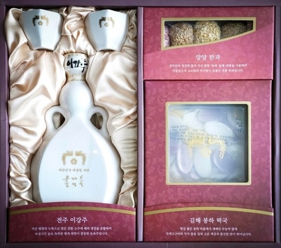 올해 설 선물은 김해의 떡국떡과 강원도 양양의 한과, 전북 전주의 이강주 등 지역 특산물 3종 세트로 구성됐다.