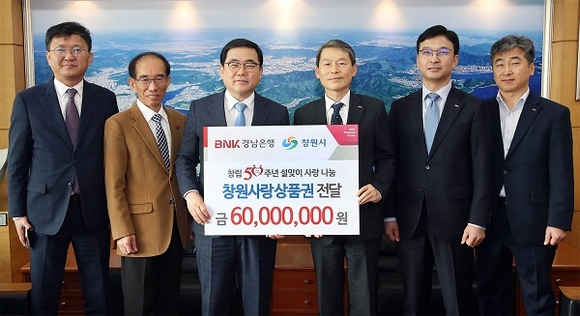 BNK경남은행은 20일 설을 앞두고 소외계층에 따뜻한 온정을 전하고자 창원시에 '창원사랑 상품권'을 기탁했다.
