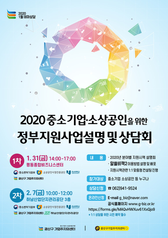 광주광역시 광산구(구청장 김삼호)와 광산구기업주치의센터는 중앙정부의 중소기업·소상공인 지원정책 통합설명회를 31일과 다음달 7일 각각 평동산단과 하남산단에서 실시한다.