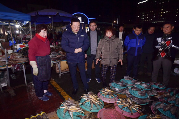 이어 남광주시장를 찾아 설 대목을 맞아 분주히 일하는 새벽시장 상인들을 격려하고, 온누리 상품권을 이용해 장을 보며 시민들과 만났다.