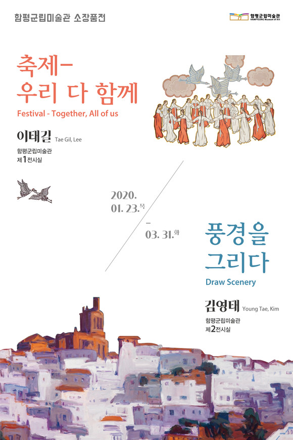 이번 전시는 함평 출신 원로 서양화가인 김영태(1927~)․이태길(1941~) 작가의 작품을 재조명하기 위한 것으로, <이태길 / 축제 – 우리 다 함께>·<김영태 / 풍경을 그리다>라는 주제로 열린다.