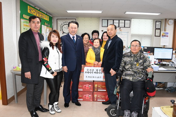 광주광역시의회 김익주 행정자치위원장은 1월22일 광산구 하남동에 소재한 광산구장애인협회를 방문해 위문품을 전달하고 관계자들의 노고를 격려했다