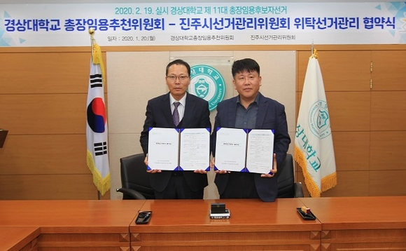 경상대학교 총장임용추천위원회(이하 총추위)는 지난 20일 진주시선거관리위원회와 '경상대학교 제11대 총장임용후보자 선거'의 위탁을 위한 업무협약을 체결했다.