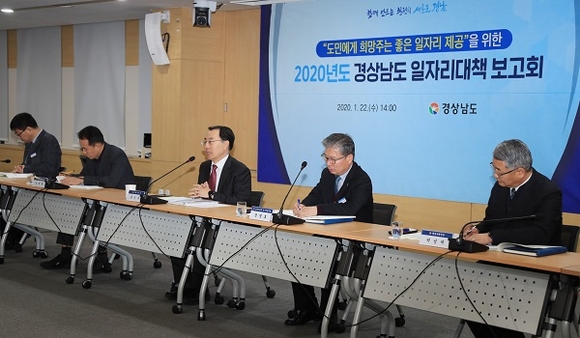 경남도 일자리대책본부는 22일 도정회의실에서 '2020년 경상남도 일자리대책 보고회'를 열어 '도민에게 희망 주는 좋은 일자리 제공'을 올해 경남도정의 비전으로 정하고, 도민이 체감하는 양질의 일자리 창출을 최우선 과제로 추진한다는 방침을 밝혔다.