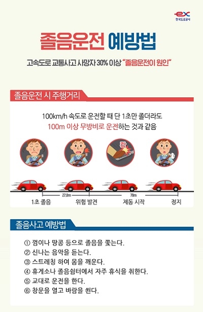 최근 3년간 1, 2월의 고속도로 사망사고 주요원인을 분석한 결과 졸음·주시태만으로 인한 사고가 70.8%(68명)로 나타났으며, 시간대는 오전 0~6시에 41.7%(40명)의 사망자가 발생한 것으로 분석됐다.