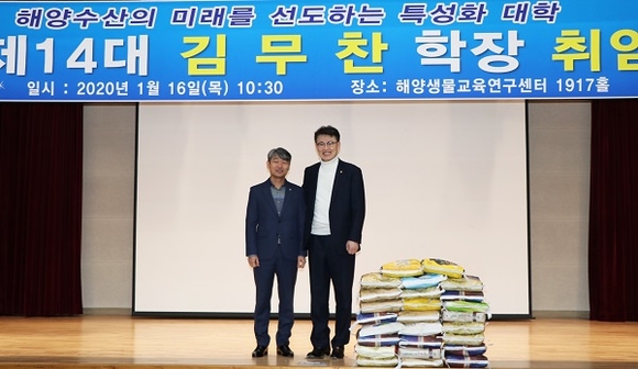 김상만 통영시 도천동장은 “이웃사랑 실천에 참여해 주신 김무찬 학장의 취임을 진심으로 축하드린다”며 “기탁한 백미는 경상대학교 해양과학대학이 소재한 도천동 내 소외계층에게 전달하도록 하겠다”고 말했다.
