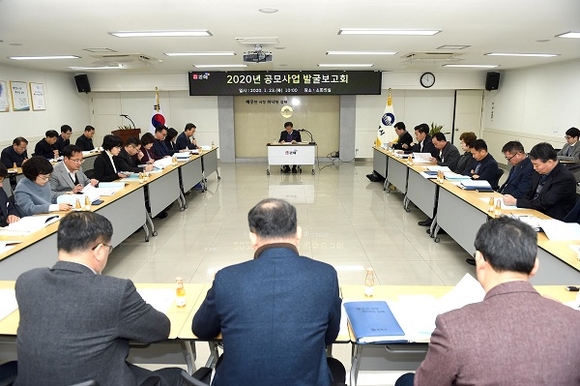 경남 김해시는 23일 시청 소회의실에서 간부공무원, 산하기관장들이 참석한 가운데 조현명 부시장 주재로 2020년 중앙부처를 비롯한 대외기관 공모사업 발굴 보고회를 개최했다.