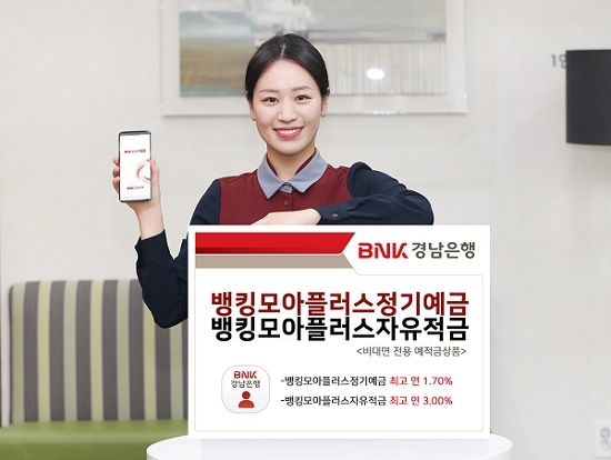 경남은행은 개인과 개인사업자를 대상으로 '뱅킹모아플러스정기예금'과 '뱅킹모아플러스자유적금'을 판매하고 있다고 5일 밝혔다.