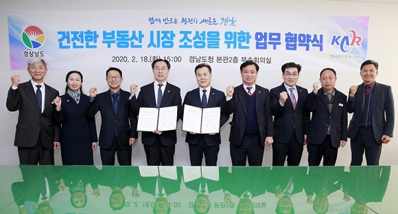 경남도는 18일 도청 부속회의실에서 한국공인중개사협회와 건전한 부동산 시장 조성에 공동 협력하기 위한 업무협약을 체결했다.