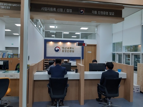 이에 따라 양산시는 지난해 4월 10일 '양산세무서 웅상민원실'을 설치함으로써 웅상지역의 원거리 세무서 이용 납세자들의 불편을 해소하고, 전국 자치단체 중 가장 발 빠르게 지방세와 국세 업무를 한 곳에서 해결할 수 있는 통합민원서비스를 지역 주민들에게 제공했다.