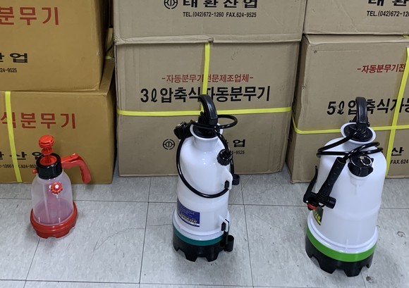 광산구는 방역용 압축분무기 124대를 동 행정복지센터에 지원하고, 여기에 21개 동에서 보유 중인 분무기 365대를 더해 시민에게 대여해주고 있다.