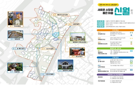 선정된 주요지역을 살펴보면 창원시 마산합로구 신월동은 산복도로 아래 위치한 대표적인 달동네로 경사가 급한 지형적 특성이 있는 곳이다, 향후 마을 곳곳의 위험요소인 축대와 배수로를 정비하는 한편 주민쉼터, 커뮤니티센터 등을 조성해 주민 안전과 공동체 활력 제고에 큰 도움이 될 것으로 보인다.