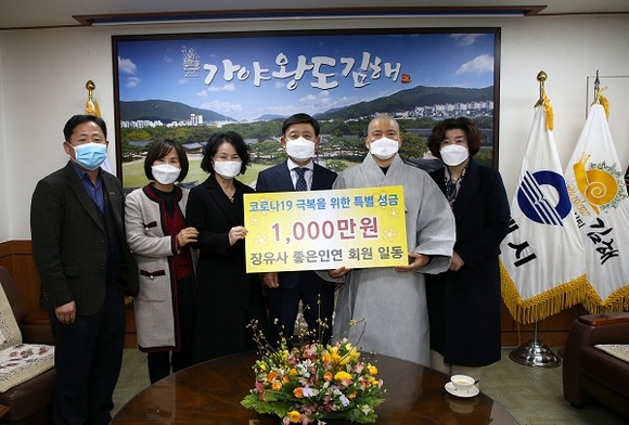 가야 고찰인 김해 장유사 사회복지단체인 좋은 인연은 4일 김해시를 방문해 코로나19 확산 극복을 위한 성금 1000만원을 기탁했다.