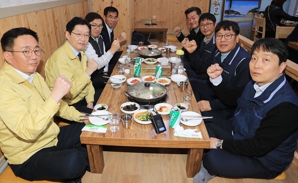 이날 식사 자리에 함께한 신동근 도청노조 위원장은 “구내식당 휴무 확대, 소상공인 돕기 1004 운동 등 도청 전 직원들의 마음이 힘들어하는 상인들에게 전달돼 조금이나마 보탬이 되길 바란다”고 말했다.