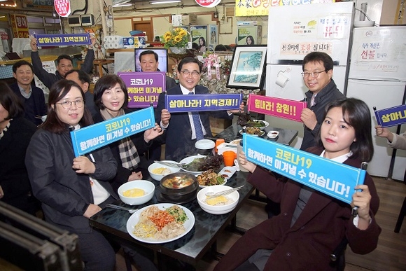 시는 지난 2일부터 '코로나19 확진자 방문업소 이용하기'를 추진해 코로나19 확진자 방문업소로 공개돼 이용자 급감으로 어려움에 직면한 업소들을 응원해 왔다. 특히 코로나19 사태가 진정될 때까지 시청 구내식당 휴무일을 확대하고 전 직원들이 중식시간에 지역식당을 의무적으로 이용하도록 '지역식당 이용 활성화' 운동을 추진하고 있다.