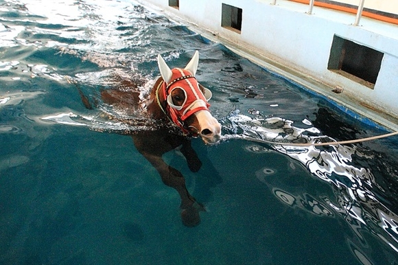 외곽둘레 82m, 수심 3m, 저수량이 약 900톤에 달하는 도넛 형태의 대규모 실내풀에서 경주마들은 2~3바퀴 정도 수영하는데, 운동효과는 1400m 트랙을 전력 질주하는 것과 같다. 수영 훈련을 통해 경주마들은 심폐 기능과 지구력을 강화하고 동시에 근육 피로도를 낮추어 컨디션을 회복한다.