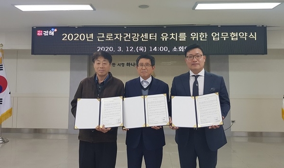 경남 김해시는 고용노동부에서 공모하는 근로자건강센터 유치를 위해 시보건소, 경남도 노동정책과, 경희의료원교육협력 중앙병원이 12일 시청 소회의실에서 업무협약을 체결했다고 밝혔다.