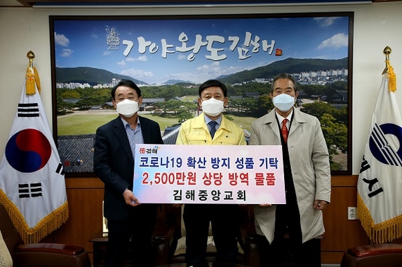 지난달 13일 시 의사회의 300만원 성금 기탁을 시작으로 대저건설 성금 1억1천만 원, 태광실업 손소독제 1만개, 김해중앙교회 성금 2500만 원, 시 약사회 마스크 550개, 김해상공회의소 박명진 회장 1천만 원 등 코로나19 확산 방지를 위한 기부가 이어져, 현재(3.16.)까지 시를 통해 공식 기탁된 후원금(품)은 총 39건, 4억 여 원에 달한다.