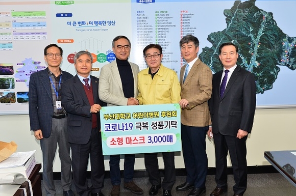 부산대학교어린이병원 후원회는 19일 시장 집무실을 방문해 코로나19 취약계층 아동에게 전달에 달라며 소형 마스크 3천매를 기탁했다.