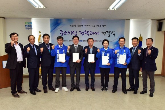 이날 오후 이용빈 후보는 민주당 광주시당에서 열린 ‘제21대 총선 중소기업 정책과제집 전달식’에 참석해 중소기업 관계자와 중소기업의 현황 및 문제점을 청취하고, 향후 정책 방향에 대해 논의했다.