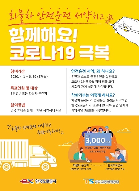 공사는 6월 30일까지 화물차 운전자 1만명의 동참을 목표로 전국 휴게소, 화물차라운지, 한국교통안전공단 화물차 운전자 교육장 등에서 서약서에 서명을 받는다. 과속·과적·적재불량을 하지 않겠다는 교통법규 준수 다짐과 충분한 휴식, 안전거리 확보 등 안전한 주행을 하겠다는 것이 서약서의 주요 골자다.