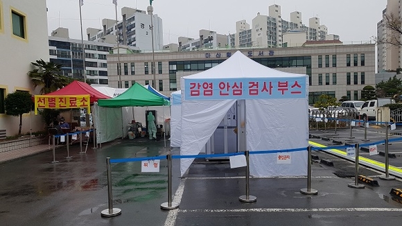 마산보건소에서는 음압부스와 음압텐트, 드라이브스루와 병행해 검체를 채취하고 있으며, 워킹스루에서의 검체 채취는 현재까지 10건이다.