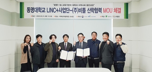 동명대학교 사회맞춤형 산학협력 선도대학(LINC+) 육성사업단은 지난달 31일 국제산학협력관 202호에서 ㈜비틀과 도시재생사업 공동추진 등을 위한 협약을 체결했다.