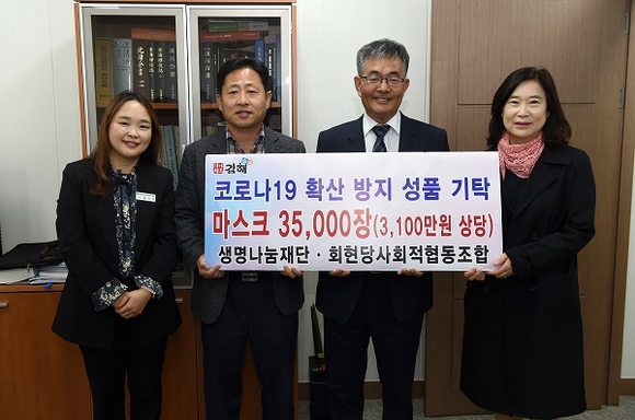 생명나눔재단은 8일 코로나19 지역 확산 예방과 취약계층 보호를 위해 마스크 3만 5천장을 김해시에 전달했다.