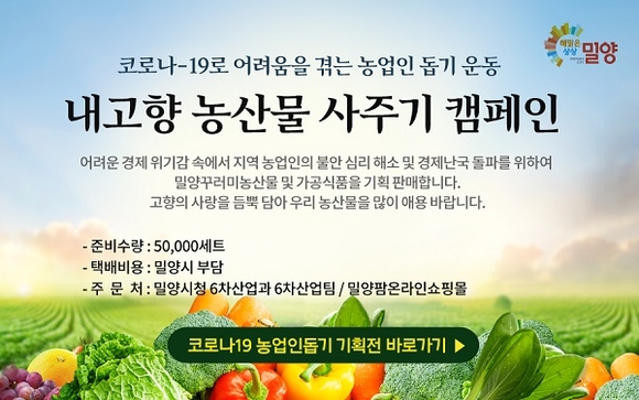 경남 밀양시는 코로나19 확산 여파로 어려움을 겪고 있는 관내 농업인과 식품업체의 애로사항 해소를 위해 신선농산물 및 가공식품 꾸러미 택배사업을 이달부터 적극 시행한다고 9일 밝혔다.