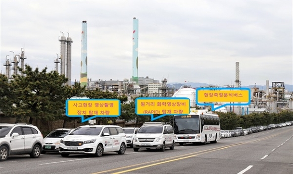 참고로 원거리 화학영상장비는 대기중의 화학물질을 원거리에서 탐지하는 이동형 장비로 화학물질 97종의 정성분석이 가능하며, 현장측정분석버스는 자체 발전기와 기상측정장비를 갖춘 이동형 실험실로 적외선분광분석기(FTIR), 가스크로마토그래피 분석기(GC-MS) 등의 분석장비를 이용해 화학사고 발생시 피해가 큰 고위험 유해화학물질 75종의 분석이 가능하다.