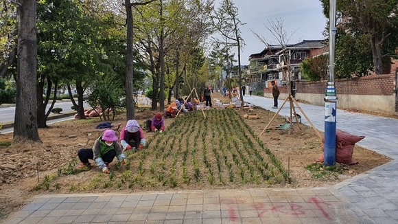 시는 총사업비 15억원을 투입해 노후 보도 구간을 주택지변으로 이설 정비한다. 기존 보도 구간은 가시나무외 10종 620주, 관목 철쭉외 5종 2만 5996주, 초화류 맥문동 외 6종 25만 350본을 집중 식재해 도로변에서 발생하는 미세먼지를 흡착‧저감할 수 있도록 조성한다.