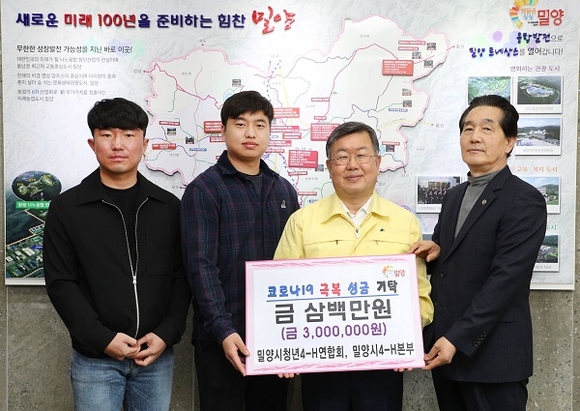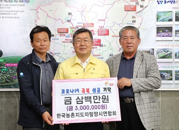 밀양시농업인학습단체는 지난 13일 밀양시청을 방문해 코로나19 극복을 위해 써달라며 성금 800만원을 전달했다.