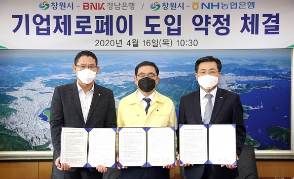 시는 이날 시금고 은행인 BNK경남은행, NH농협은행과 도입 약정을 체결했다. 시범운영을 통해 불편사항, 회계절차상 애로점 등을 점검한 후 오는 5월부터 전면 시행할 방침이다.