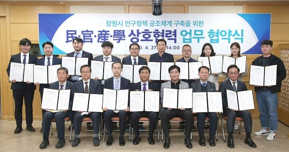 경남 창원시는 27일 제3회의실에서 인구위기 공동대응을 위한 민·관·산·학 업무협약을 체결했다.