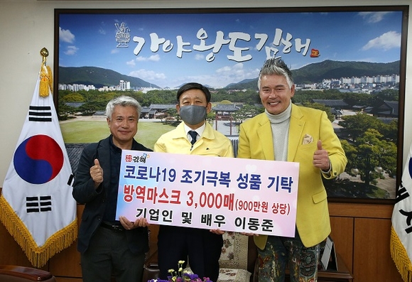 경남 김해시는 27일 관내외 기업인과 영화배우 이동준이 코로나19로 경영난을 겪고 있는 소상공인들 위해 마스크 3천매(900만원 상당)를 기탁했다고 밝혔다.