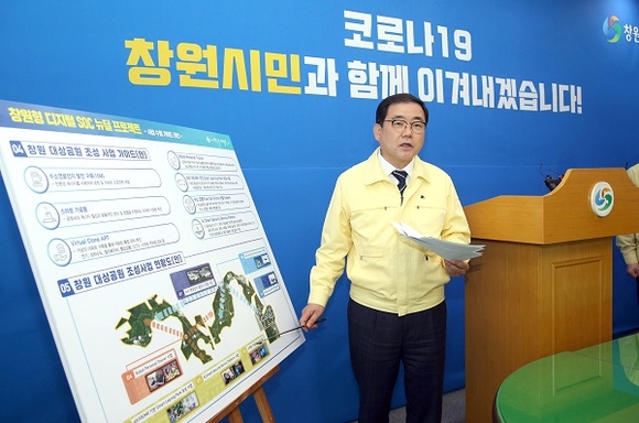 허성무 창원시장은 29일 기자회견을 열고 포스트 코로나19 이후 지역경제 활성화를 위한 일자리 창출의 대안이 될 수 있는 창원형 디지털 SOC 뉴딜 프로젝트 가이드 라인을 발표했다.