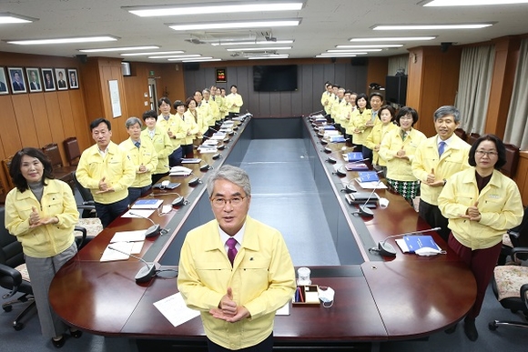 이날 박종훈 교육감과 부교육감, 국‧과장들도 ‘덕분에 챌린지’방식에 맞추어 “의료진 덕분에, 교직원 덕분에, 학부모 덕분에”를 외쳤다.