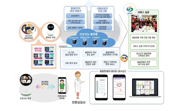 발달장애 청소년용 온라인 인지정서 평가 도구와 사회성 증진 프로그램등을 AI로봇에 탑재하고 학습시켜, 장애 아동의 학습 전 과정에 내용을 AI기반 빅데이터 분석 플랫폼에 축적하여, 장애 개선을 위한 개인 맞춤형 분석 보고서를 제공하게 된다.