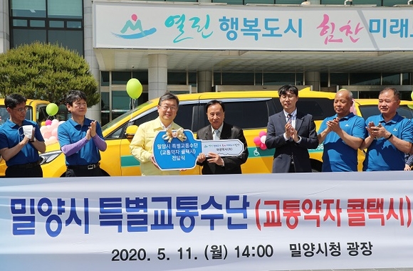 경남 밀양시는 11일 시청 광장에서 특별교통수단(교통약자 콜택시) 신차 전달식을 가졌다.