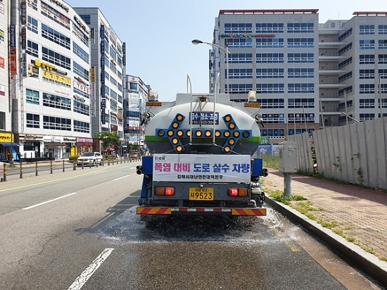대형 건물이 밀집한 북부동, 내외동, 장유1·2·3동 중심상업지와 인구밀집지역은 대로변 위주로 살수차를 운행한다. 살수작업은 도심 내 복사열을 감소시켜 열섬효과를 완화해주고 미세먼지 제거로 대기질을 개선하는 것은 물론 아스팔트 소성변형 예방으로 도로 관리비용을 절감할 것으로 예상된다.