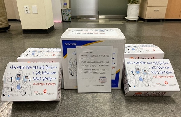 그러면서 "직원 모두는 지금도 현장에서 긴장을 늦추지 않고 코로나19의 종식을 위해 묵묵히 최선을 다하고 계신 의료진의 노고를 잊지 않고 존경과 감사의 마음으로 계속 지지하고 응원할 것"이라고 덧붙였다.