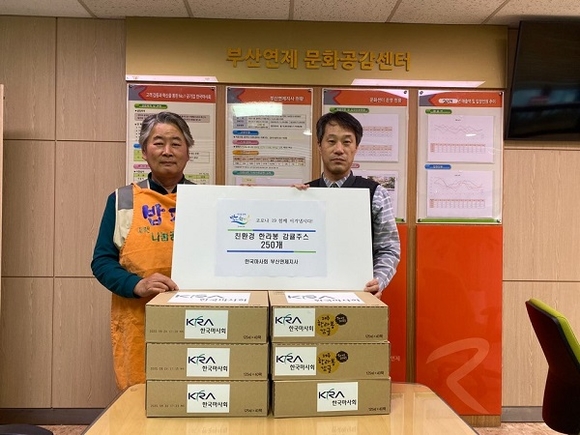 부산연제지사는 무료급식을 이용하던 소외계층 약 200여명을 위해 한라봉감귤주스 250개를 지원했으며, 해당 위문품은 무료급식이 재개될 때 급식 이용객에게 배부될 예정이다.