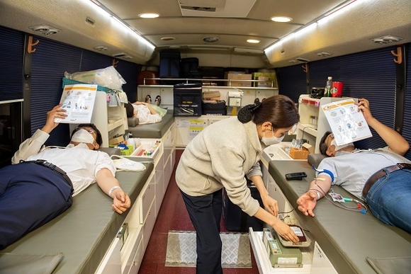 참여한 직원들은 마스크 착용, 발열 검사와 손 소독 등 감염병 예방 수칙을 지키며 헌혈 캠페인에 참여했다.