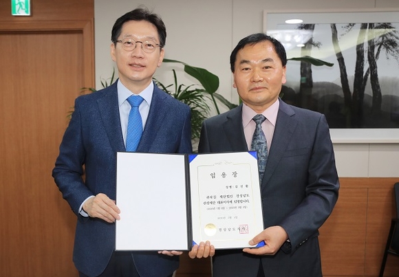 김 대표이사는 15일 오전 도지사 집무실에서 김경수 도지사로부터 임명장을 수여받고 대표이사로서의 업무를 시작했다.
