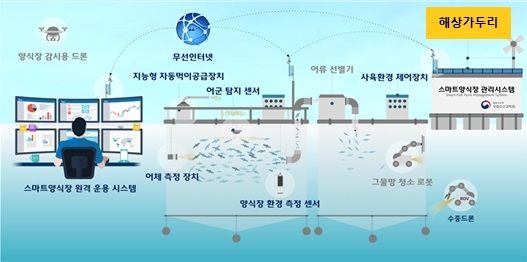 경남도가 전국 최초로 추진하고 있는 '스마트 피쉬 팜' 사업은 지능형 자동먹이공급장치, 어류 성장 원격 측정장치, 사육환경·수중영상 실시간 모니터링 시스템 및 제어장치, 기상관측 장치, 모바일 기기와 수중드론을 연동하는 기술 등을 적용한 최첨단 가두리 양식 사업이다.
