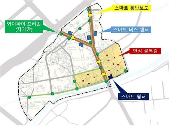 이 사업은 6월에 국토부로부터 국비를 교부 받아 본격적으로 추진해 △사물인터넷(IoT) 기술을 기반으로 시간대와 사람의 활동에 따라 안전과 편익을 제공하고 △스마트 통합플랫폼과 연결되어 상시 모니터링과 비상 시스템이 구축돼 비상상황과 범죄로부터 스마트 기술이 안전타워 역할을 해 각종 위급 사항에 즉각 대응대처가 가능하게 될 것이며, △보다 빠르고 정확한 편익 정보를 통해 대중 공공시설(BIS, 버스 정류장, 쉼터, 생활복지 등)이 다양한 주민 참여와 문화·복지활동 공간으로 변화될 것을 기대하고 있다.