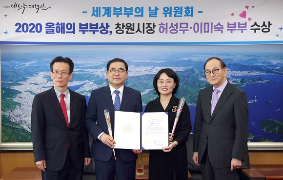 경남 창원시는 허성무 시장과 이미숙 여사 부부가 '2020 세계 부부의 날'을 맞아 선정하는 전국 시장·군수·구청장 부문 올해의 시장 부부상 수상자로 선정됐다고 22일 밝혔다.