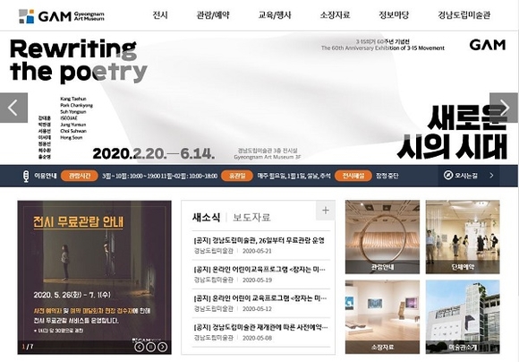 경남도립미술관이 오는 26일부터 '새로운 시(詩)의 시대'와 '자화상(自畵像)Ⅱ-나를 보다' 전시를 무료관람 서비스로 운영한다.